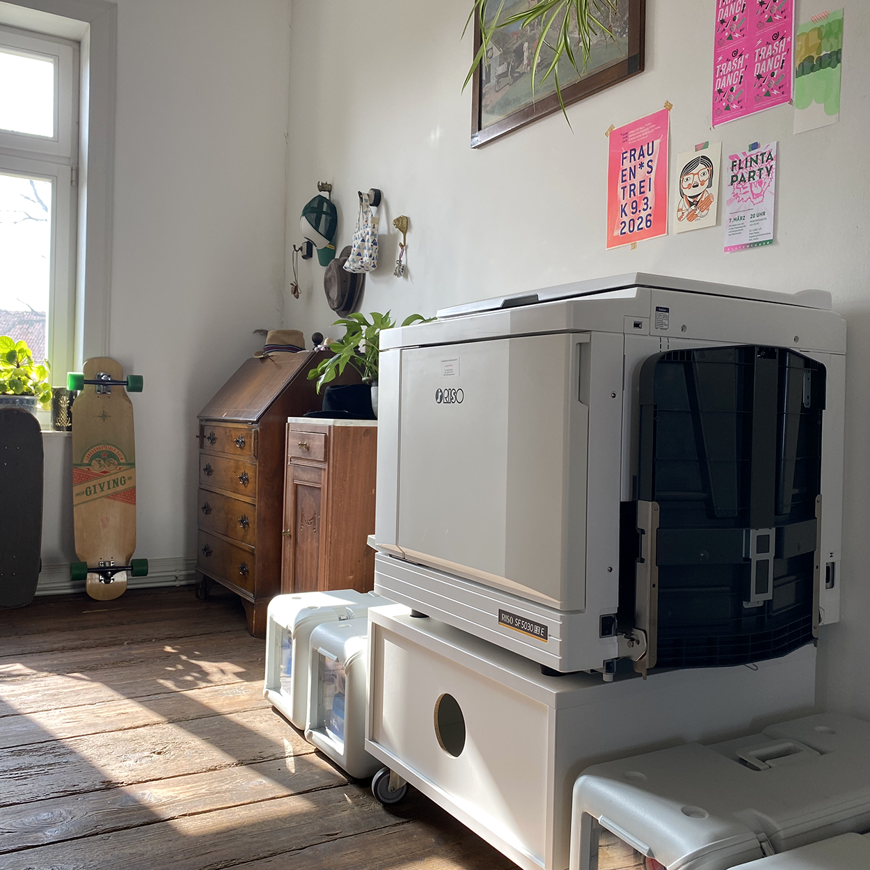 Ein Risograph ist eine extrem umweltfreundliche Originaldruck-Maschine aus Japan, die auf den ersten Blick wie ein normaler Kopierer aussieht. Die Drucktechnik erinnert aber eher an Siebdruck, wobei der Riso sehr viel schneller und günstiger arbeitet, keine Chemie und wenig Strom benötigt. Er druckt künstlerische Produktionen auf Papier > Zines, Art-Prints, Postkarten, Visitenkarten, Flyer, Protest-Art - anything! (Im RISORT nur bis DINA4, 90 – 300 g/m2)